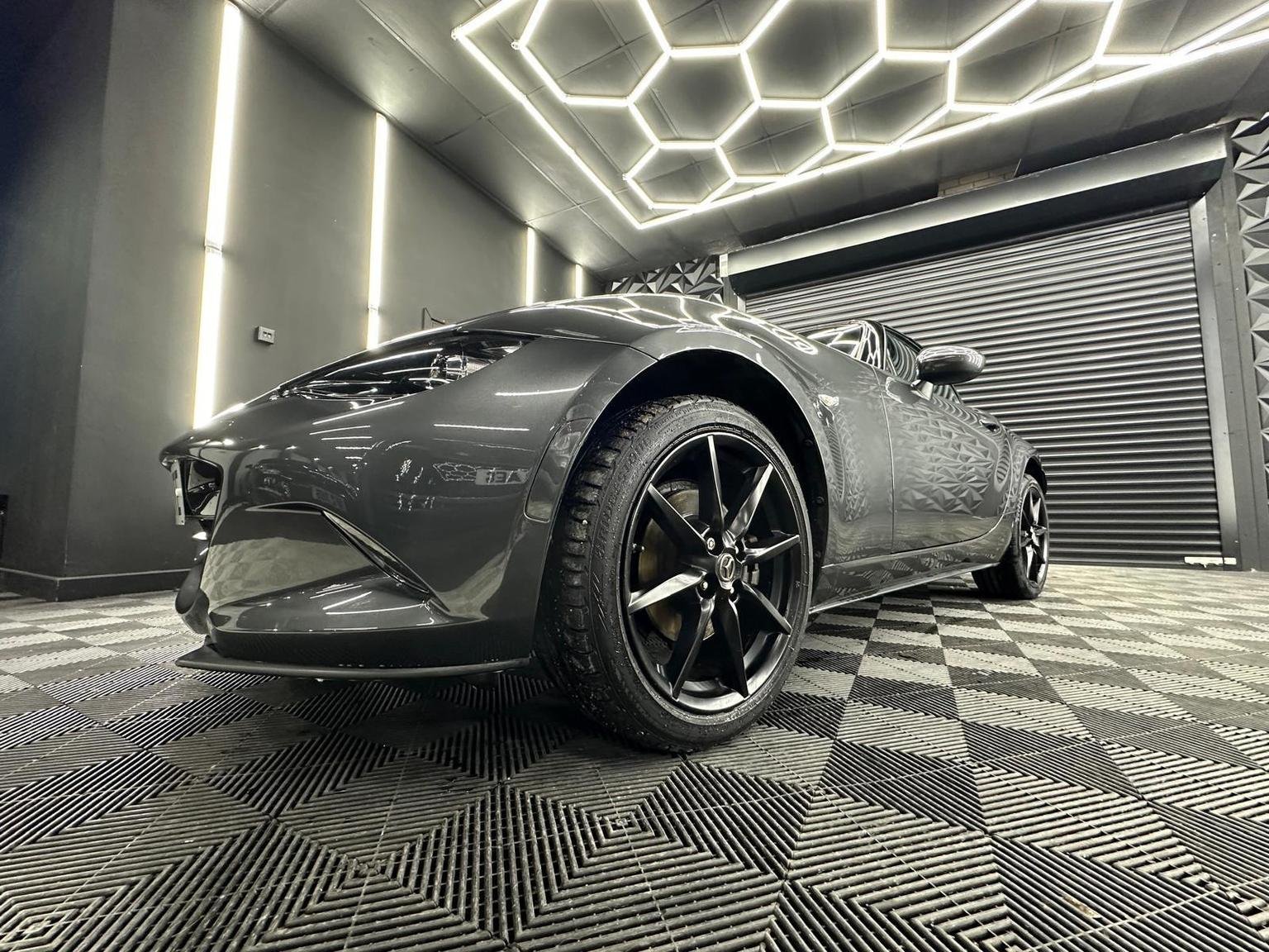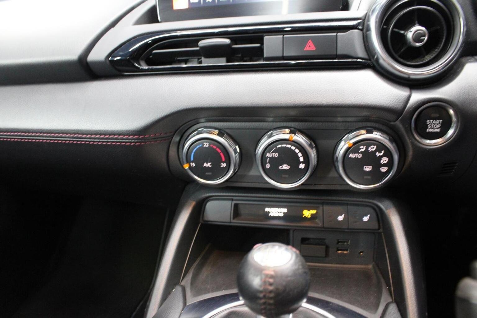 Emergency Tyre Repair Kit, Engine Start-Stop Button, Fashion Bar Cladding, Four-Wheel Anti-Lock Braking System - 4W-ABS with Electronic Brake-Force Distribution - EBD, Fuel Filler Lid - Body Colour, Gear Knob - Leather with Chrome Surround, Gear Shift Indicator, Handbrake - Leather Wrapped, Headlights - Adaptive Front Lighting System, Headlights - Coming-Leaving Home, Headlights - LED with Auto Headlight Levelling, Heated Seats, Hill Hold Assist, ISOFIX Child Seat Anchorage - Passenger Seat, Inner Door Handles - Chrome, Integrated Bluetooth, Interior Courtesy Light, Interior Upper Door Trim - Body Coloured, LED Daytime Running Lights, LSD - Limited Slip Differential, Lane Departure Warning System, Multimedia Commander, Multimedia System, Rain-Sensing Front Wipers, Rear Brake Light - High Mounted, Rear Parking Sensors, Remote Central Locking with Deadlocking and Remote Boot Release, SKYACTIV-Body Engineered Triple H Body Structure to Help Protect Occupants from Impact Forces, SRS - Supplementary Restraint System, Satellite Navigation System, Seatbelts - 3 Point - ELR - 2x with Pre-Tensioners, Seatbelts - Reminder Screen with Audible Warning, Seats - Drivers Manual Slide-Recline and Tilt Adjustment, Seats - Front Passenger Manual Slide and Recline Adjustment, Side Airbags, Side Door Trim - Black with Red Stitching, Smart Keyless Entry, Sports Suspension, Steering Wheel - Leather with Chrome Bezel, Steering Wheel - Mounted Audio and Bluetooth Controls, Steering Wheel - Tilt Adjustment, Storage - Rear Centre Box with Lockable Lid, Sunvisors - Drivers and Passengers with Covered Vanity Mirror-Ticket Holder, Thatcham Category 1 Alarm and Immobiliser, Trip Computer, Tyre Pressure Monitoring System, USB - iPod Connectivity, Windblocker, 17in Alloy Wheels - Bright Finish, 7in Colour Touch Screen Display, Adjustable Speed Limiter, Aha App and Stitcher App Integration, Air Conditioning - Climate Control, Air Conditioning Dials - Chrome, Air Vent Surrounds - Chrome, Analogue Speedometer, Audio Transfer from Bluetooth Devices, Auto Dimming Rear View Mirror, Automatic Passenger Airbag Deactivation System, Auxiliary - AUX - and Two USB Input, Body Coloured Door Mirrors, Chrome Meter Rings, Coinbox, Convertible Top - Premium Cloth Soft Top with Heated Rear Window - Manually Operated, Cruise Control with Manual Speed Adjustment, Cupholder - Front x2, DHS - Deployable Hood System, Double Pinion Electric Power Assisted Steering - DP-EPAS, Driver and Passenger Front Airbags, Dual Exhaust System, Dusk Sensing Automatic Headlights, Dynamic Stability Control - DSC - with Traction Control System - TCS, Electric Windows - One Touch Auto Down, Electrically Adjustable-Heated Door Mirrors