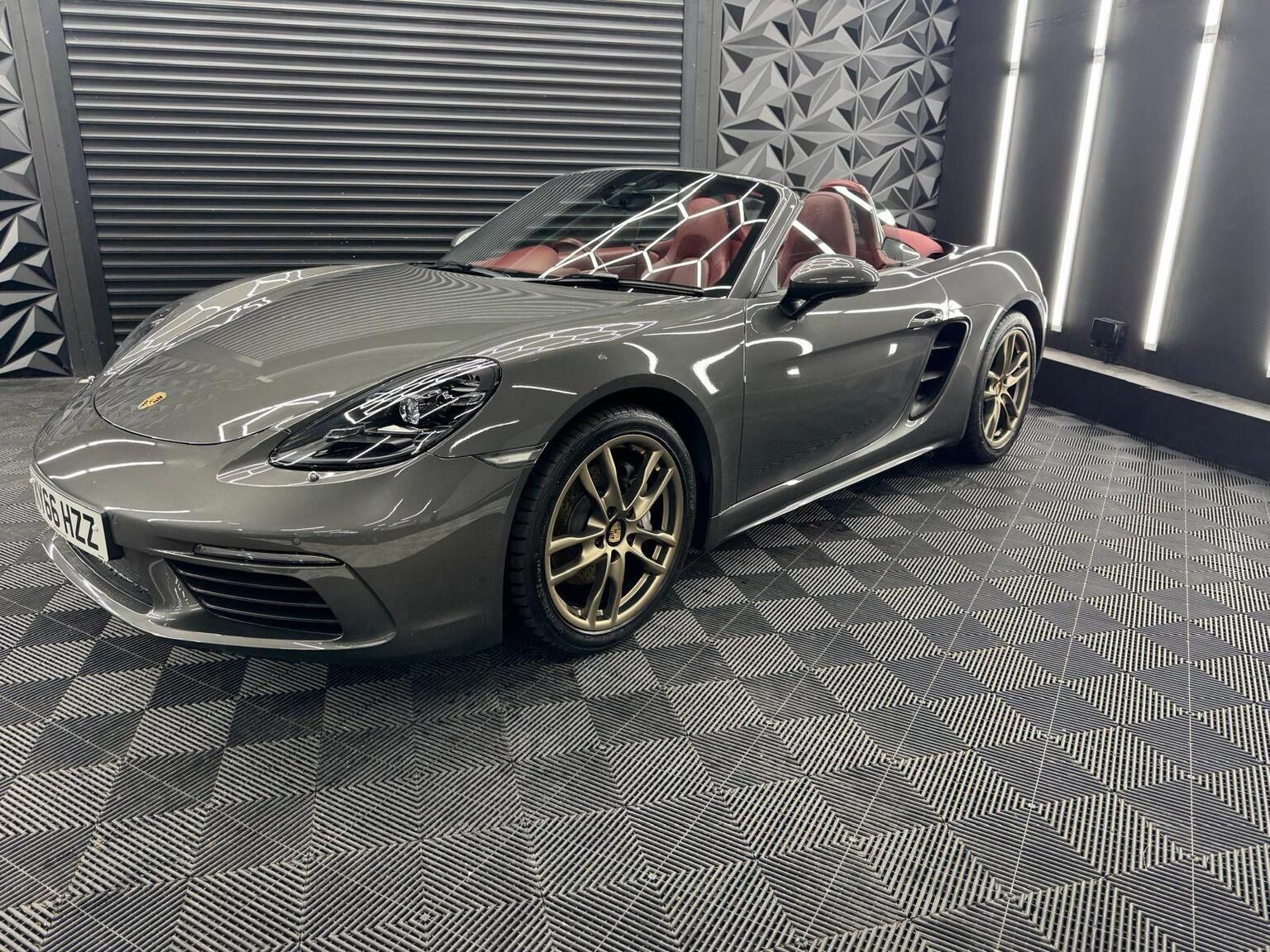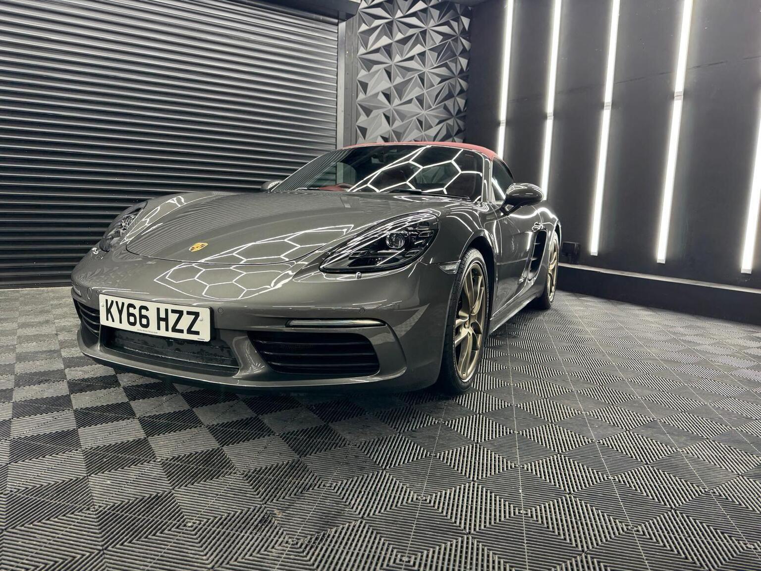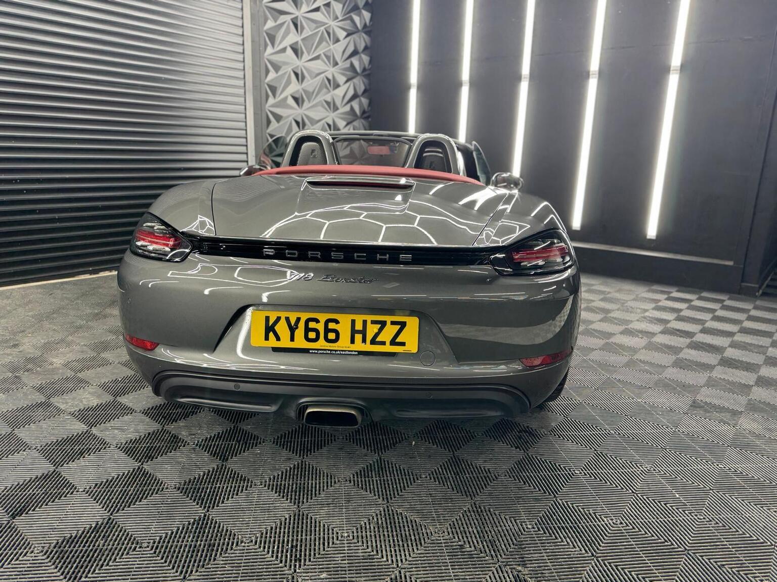 12-Volt Socket in Passenger Footwell, 18in Alloy Wheels - Boxster, Air Conditioning with Integrated Active Carbon Filter, Alarm System, Anti-Theft Wheel Bolts, Ascending Centre Console with One Uncovered and One Covered Storage Compartment, Automatic Deploying Rear Wing, Automatic Headlight Activation including Welcome Home Lighting, Bi-Xenon Main Headlights with Integrated LED Daytime Running Lights, Clothes Hooks on Seat Backrests, Convertible Top Colour - Black, Deletion of Model Designation, Digital Displays for Driving Speed - Selected Gear - Odometer - Trip Meter and Time, Door Sill Guards with Model Logo, Electric Parking Brake, Engine Immobiliser and Central Locking with Remote Control, Fan with Air Recirculation and Defroster Functions, Fixed Roll-Over Bar, Floor Mats, Full Size Airbags for Driver and Front Passenger, Fully Automatic Fabric Hood, Green Tinted Heat-Insulating Glass, Heated Rear Screen, Hood Lining in Black Fabric, Instrument Cluster with Central Rev Counter and High Resolution 4.6inch Colour Display, Instrument Dials and Rev Counter in Black, LED Auxiliary Lights Units in Front Apron with Position Lights - Direction Indicators and Side Indicators, LED Tail Lights with Integrated Four-Point Brake Lights and Reversing Lights, Luggage Compartments at Front and Rear, Net-Type Wind Deflector, PORSCHE Logo on Accent Strip and Model Designation on Rear Apron in Silver Colour - High Gloss, PSM - Porsche Stability Management, Porsche Communication Management - PCM, Porsche Side Impact Protection - POSIP, Porsche Vehicle Tracking System Plus, Power Steering, Power Windows with One-Touch Operation and Door Seal Protection Function, SPORT Button to Activate Dynamic Driving Setting for Engine and Transmission, Sound Package Plus, Sports Seats with Electric Backrest Adjustment and Manual Fore-Aft and Height Adjustment, Sports Steering Wheel - Diameter 375mm with Manual Fore-Aft and Height Adjustment, Steering Wheel Rim - Gear Lever - Door Pull Inlays all in Smooth Finish Leather, Storage Compartment in Each Door, Twin-Tract Exhaust System with Central Tailpipe in Stainless Steel, Two Individual Cupholders, Tyre Pressure Monitoring - TPM, Tyre Sealing Compound and Electric Air Compressor, Windscreen Wiper System with Aero Wiper Blades and Washer Jets, Windscreen with Grey Top-Tint