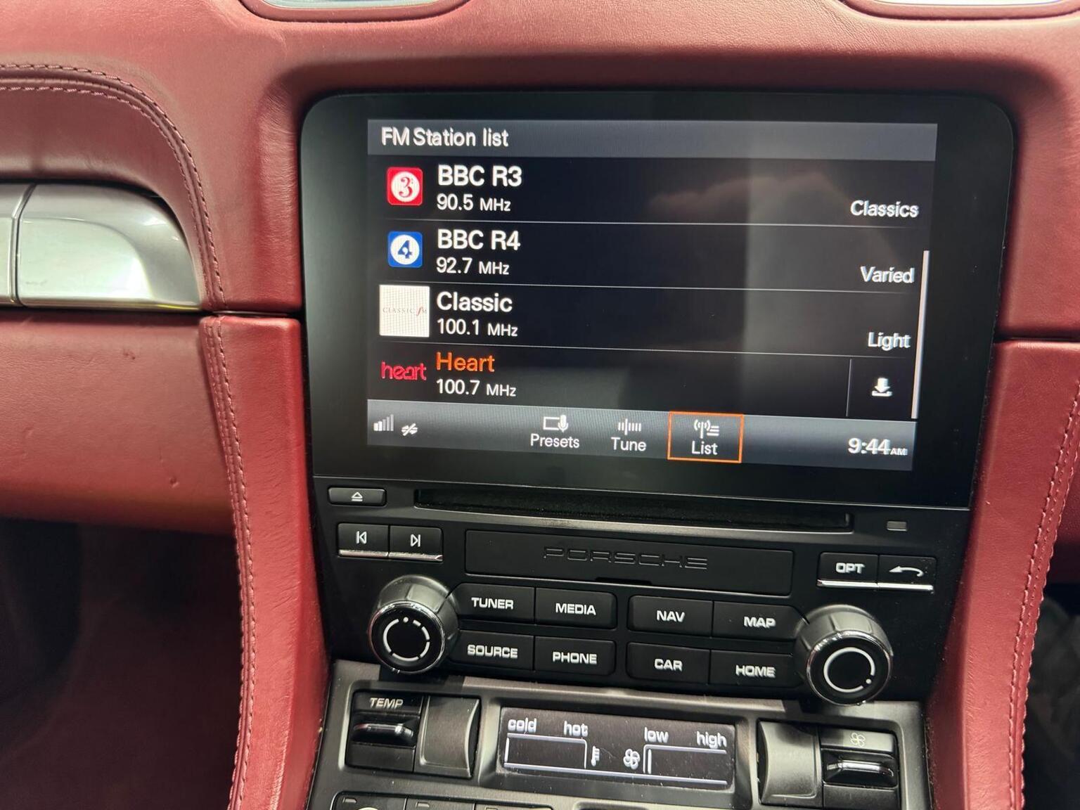 Park Assist - Rear, Park Assist - Front and Rear, Digital Radio, Cruise Control, Roll-Over Bars Painted in Exterior Colour, Convertible Top Colour - Red, Seat Heating, Sun Visors in Leather, Seat Belts - Guards Red, BOSE Surround Sound System, Headlight Cleaning System Covers Painted in Contrasting Colour, Porsche Crest on Head Restraints, Bi-Xenon Headlights including Porsche Dynamic Light System - PDLS, Door Trim Package in Leather, Electrically Folding Exterior Mirrors, Wheel Centres with Full-Colour Porsche Crest, Leather with Leather Interior - Bordeaux Red