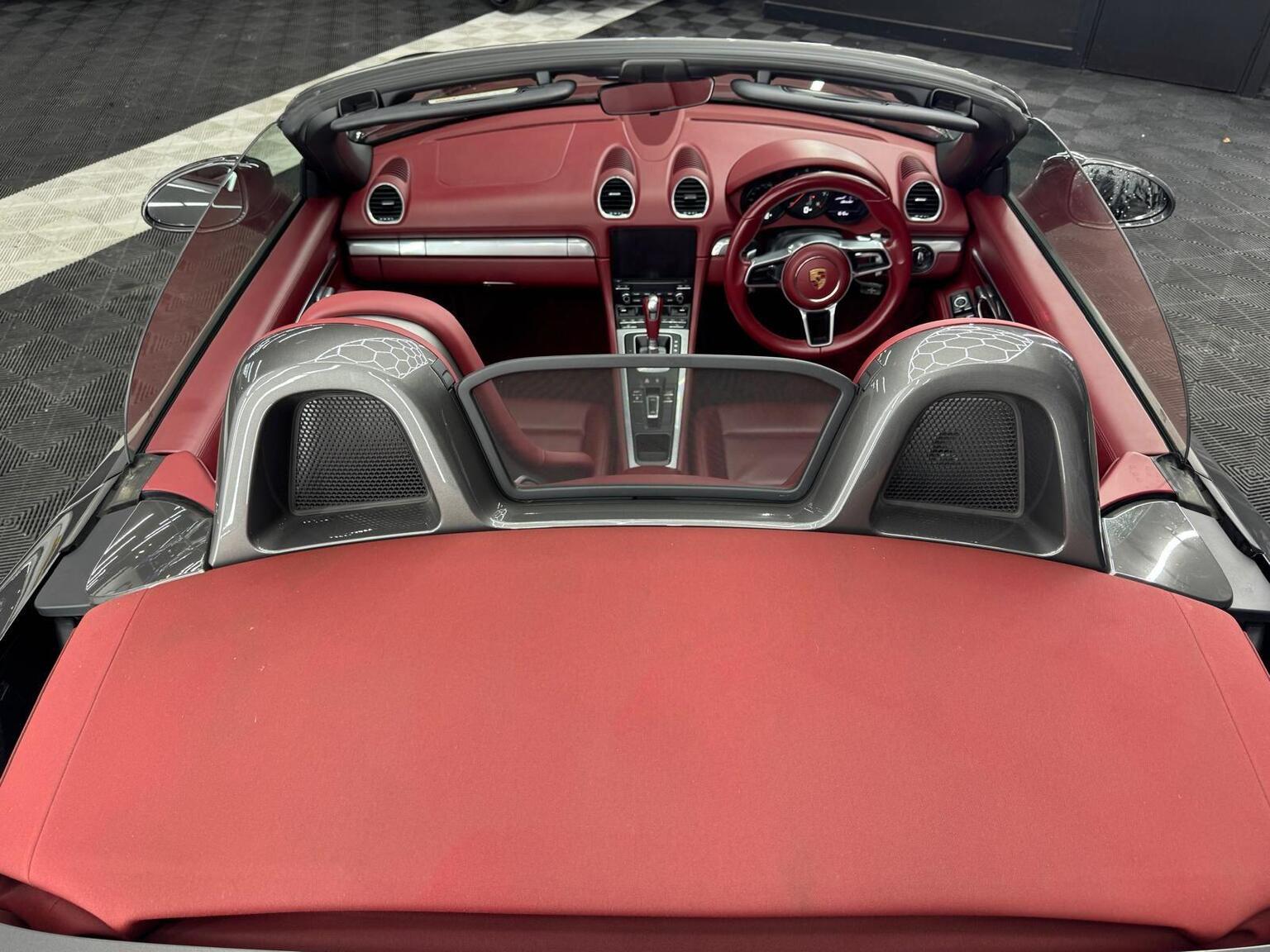 Experience exhilarating performance with the 718 Boxster T, capable of accelerating from 0-62mph in a swift 4.9 seconds, demonstrating its superior agility compared to other vehicles in its class. Further enhancing its appeal are the headlight cleaning system covers painted in a contrasting colour and luxurious leather sun visors, adding both style and practicality to this already impressive sports car.
