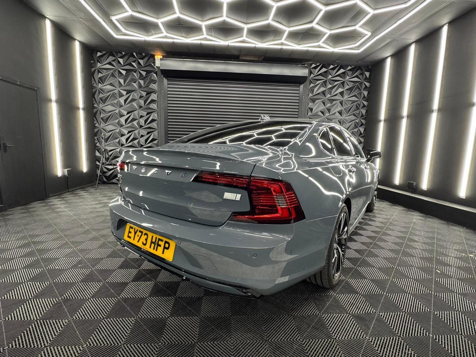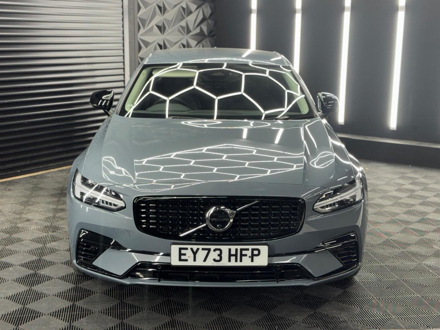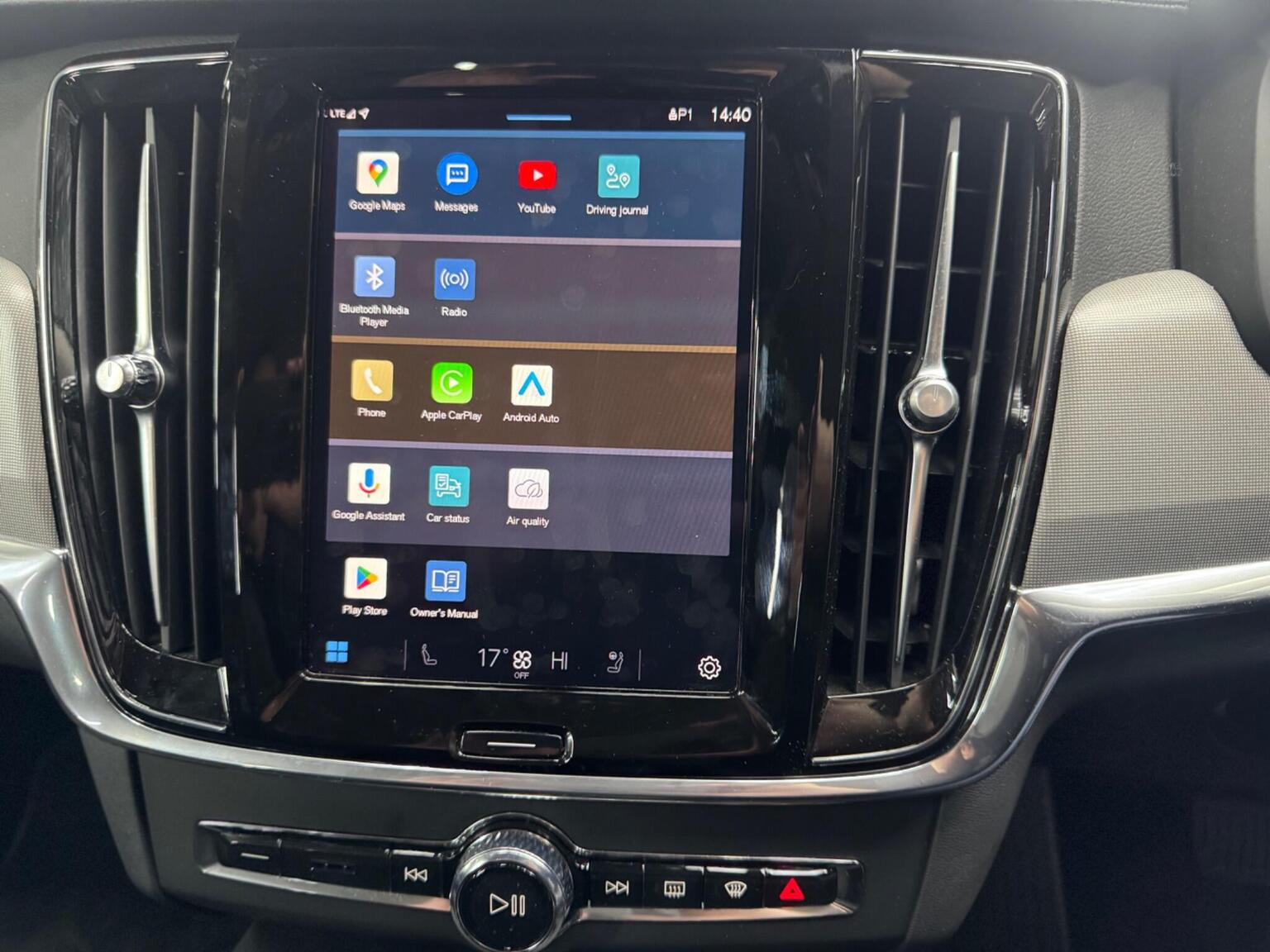 This 2023 Volvo S90 h T8 Plus boasts a full service history and an MOT valid until October 2026, offering peace of mind for its next owner. This plug in hybrid model features a powerful 2.0 litre petrol engine paired with four wheel drive, ensuring a responsive and capable drive. It meets Euro 6 emission standards and has a clear vehicle history check. Notable features include wired Apple CarPlay for seamless smartphone integration, keyless entry and drive for convenience, and automatic LED headlights with active high beam and day running lights. Inside, you'll appreciate the comfort of a heated steering wheel and the advanced 2 zone electronic climate control with CleanZone air quality system and pollen filter.